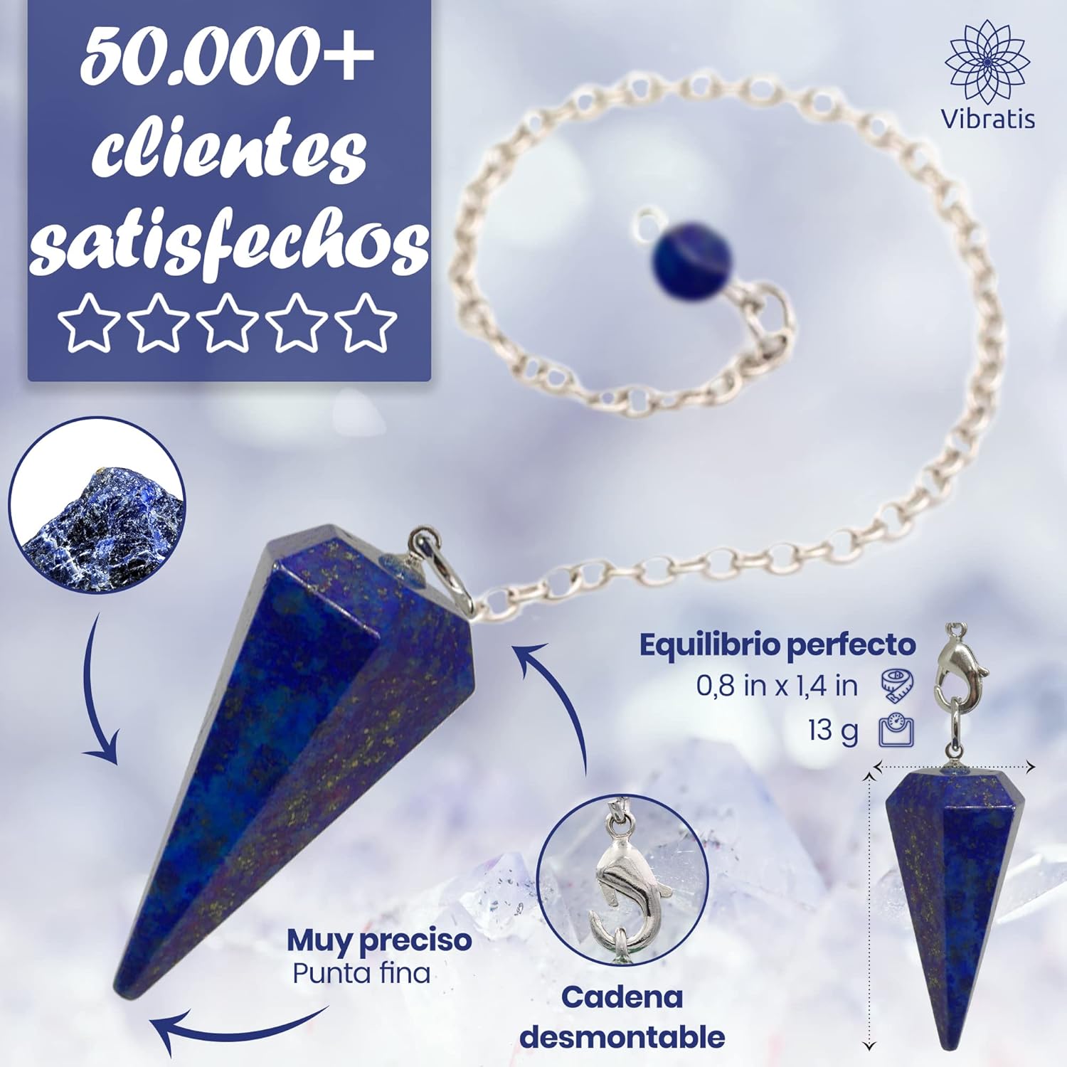 Conecta con tu intuición y transforma tu práctica espiritual con este elegante péndulo de lapislázuli.
